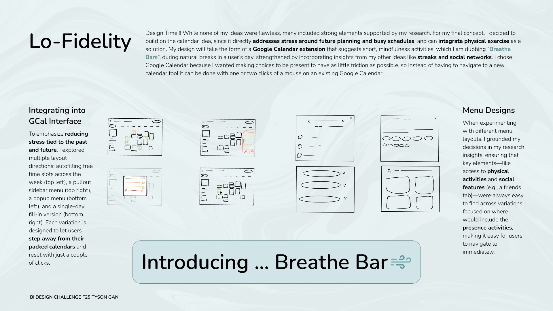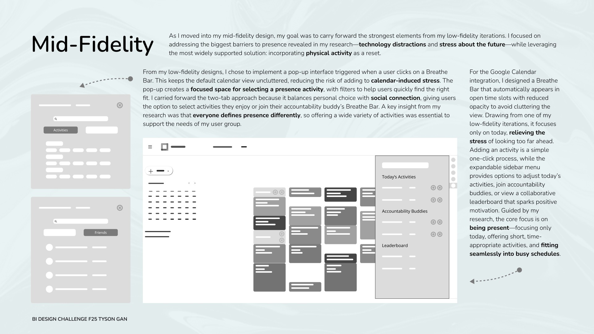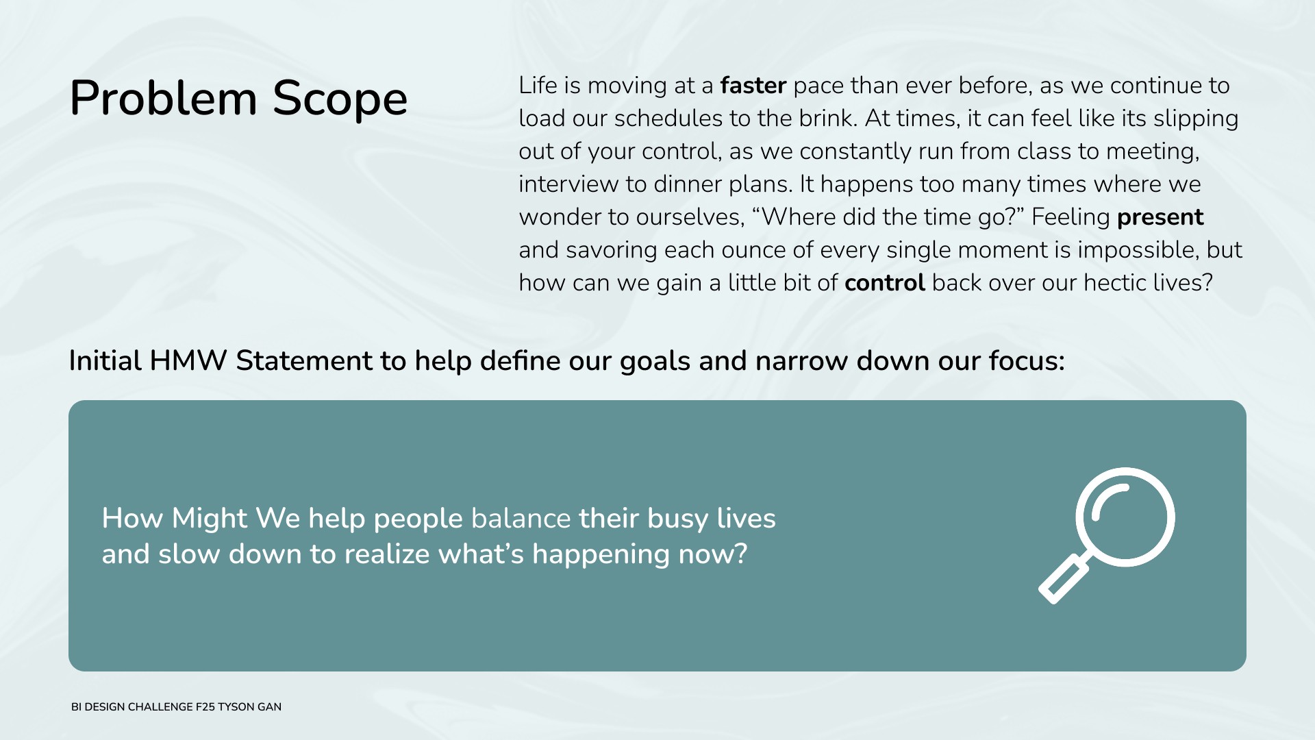 Designing a Google Calendar Extension with the goal of helping users take a moment to disconnect and feel present in their life.