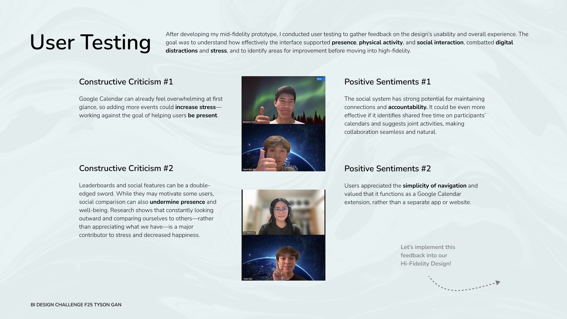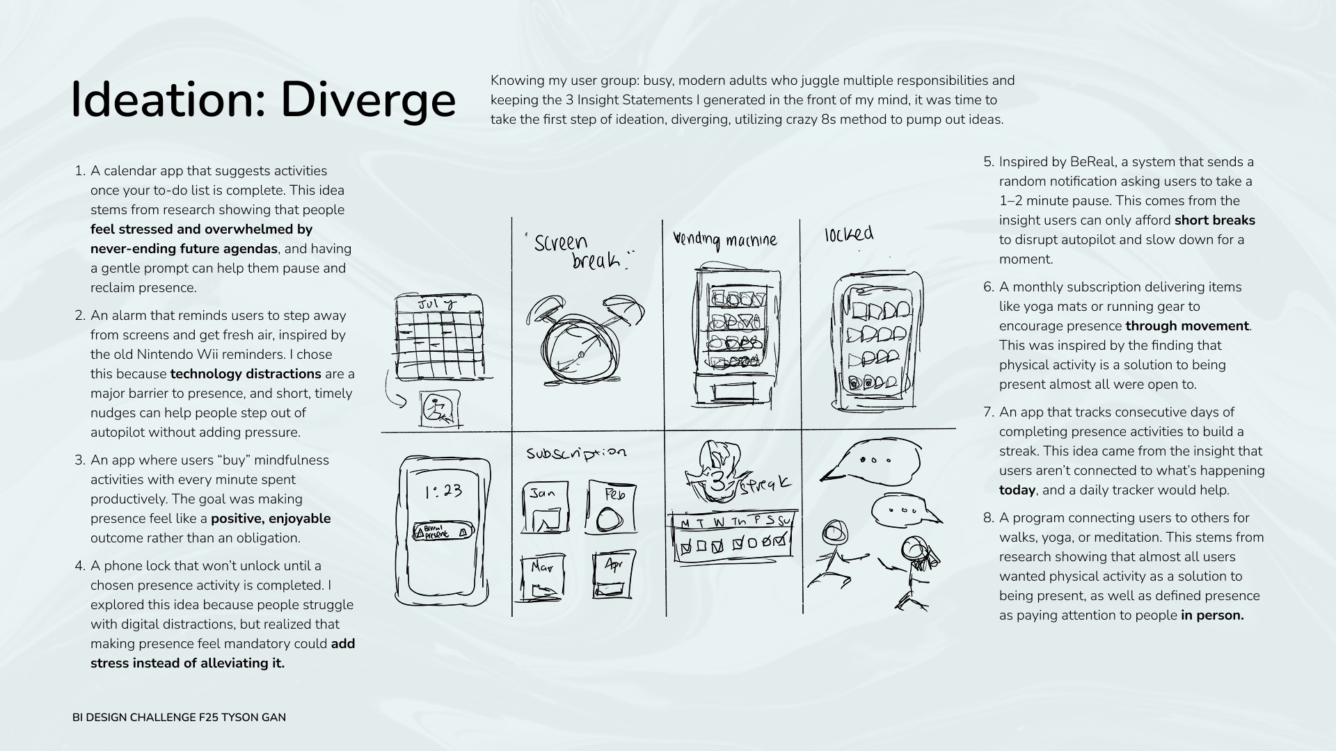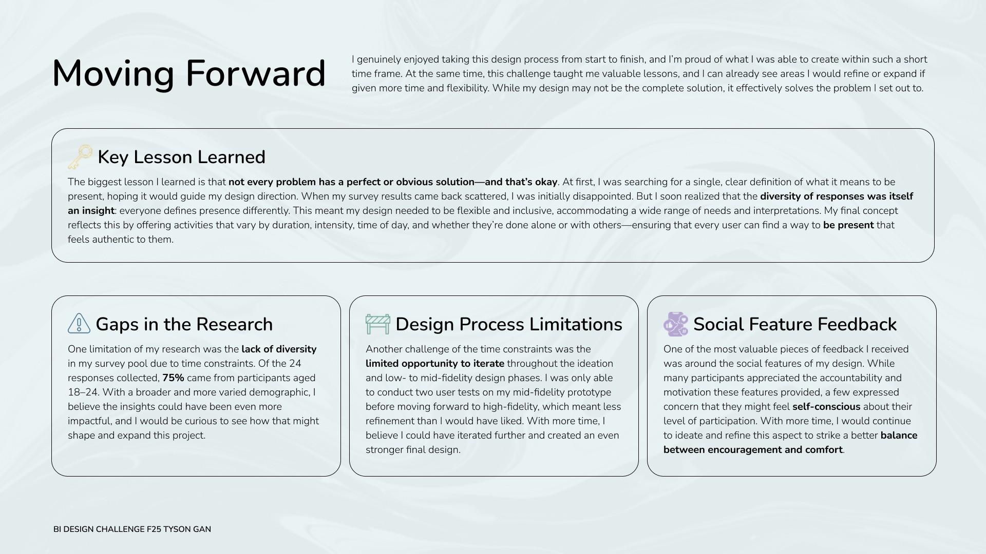 Designing a Google Calendar Extension with the goal of helping users take a moment to disconnect and feel present in their life.