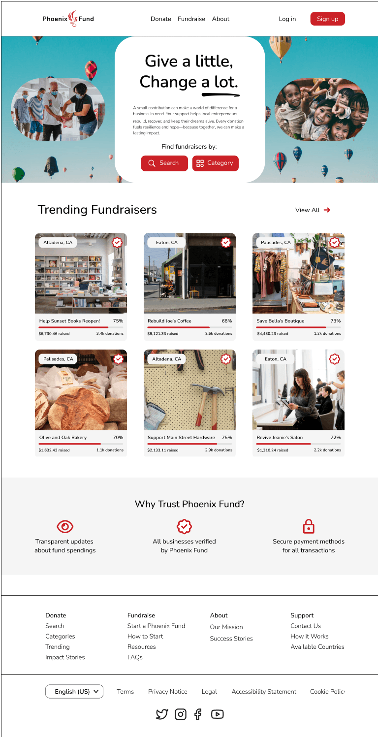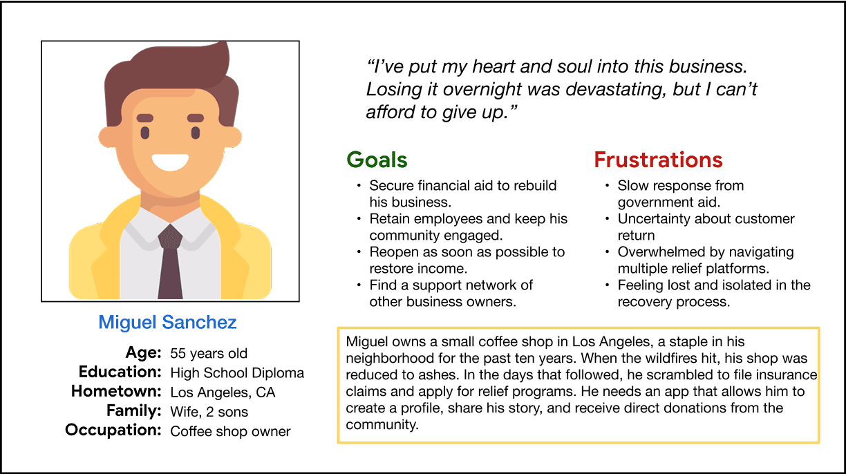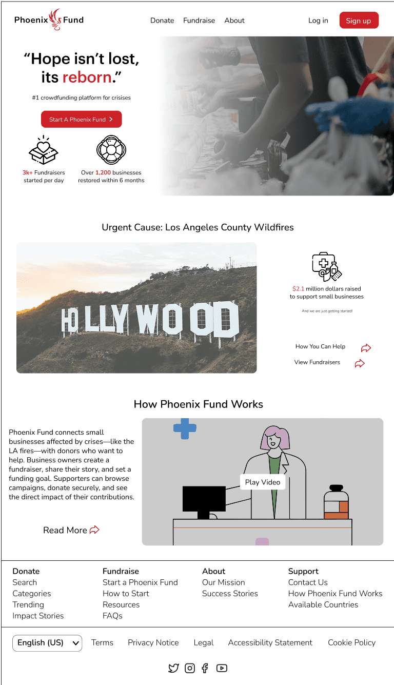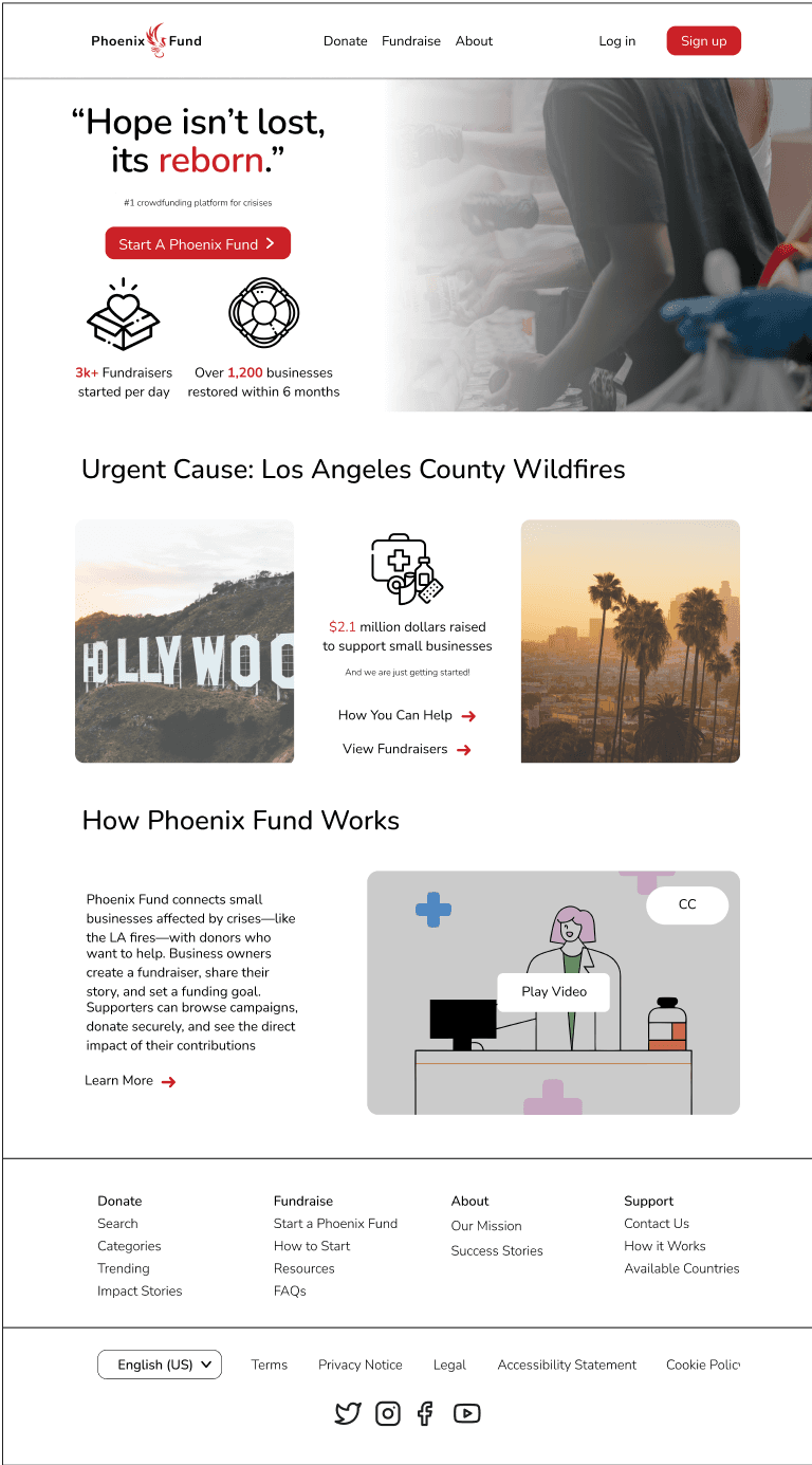 Designing a crisis-focused crowdfunding platform designed to help small businesses recover from disasters like the LA Fires.