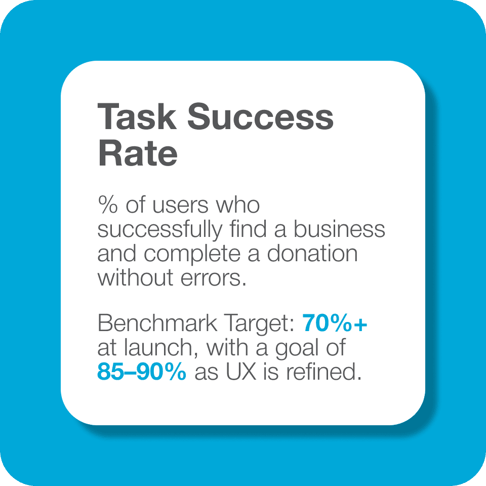To measure whether Phoenix Fund is effectively bridging small businesses in crisis with their communities, I defined 6 primary KPIs I would measure. These metrics reflect not only the platform’s financial impact, but also its usability, trustworthiness, and ability to drive long-term recovery.