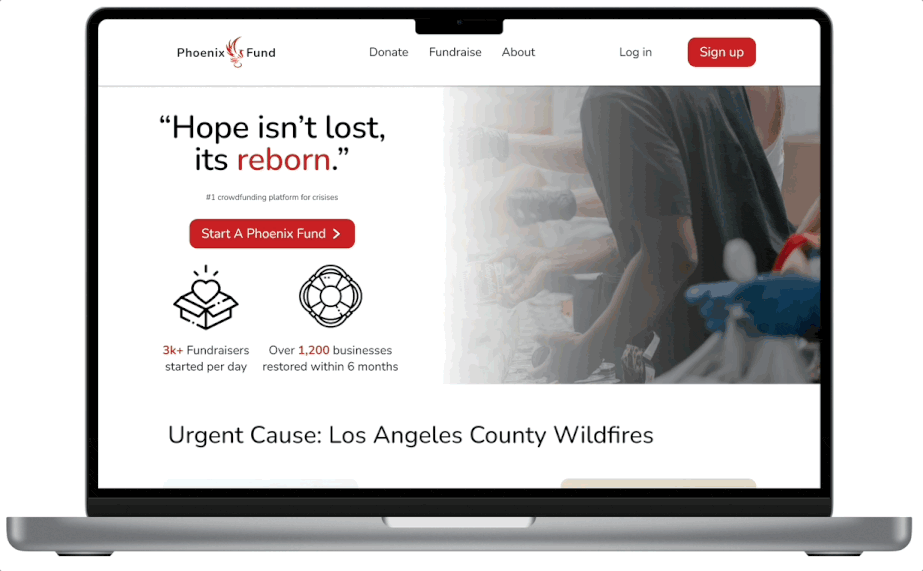 In the aftermath of crises such as the recent LA wildfires, small businesses face financial devastation, struggling to rebuild without immediate access to funding. Existing crowdfunding platforms are often generalized and not tailored to the unique needs of small businesses affected by disasters. There is a need for a dedicated, crisis-focused crowdfunding solution that enables small businesses to recover quickly and effectively.