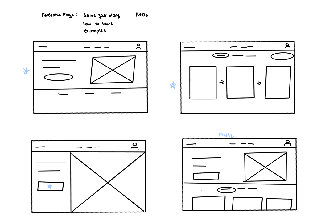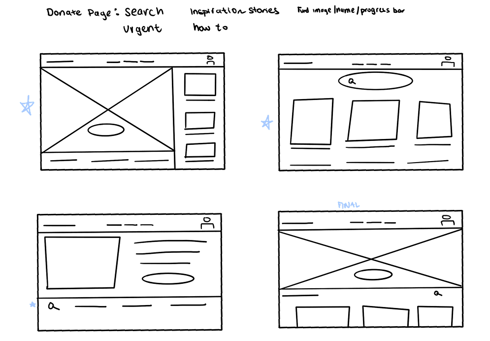 To bring my ideas to life, I started with hand-drawn wireframes, sketching multiple iterations to explore different layouts. For each iteration, I selected the most effective elements and combined them into a final paper prototype. With a clear direction, I translated my refined sketches into digital wireframes, ensuring consistency and usability. This iterative process helped me validate key design decisions, setting a strong foundation for high-fidelity prototypes.