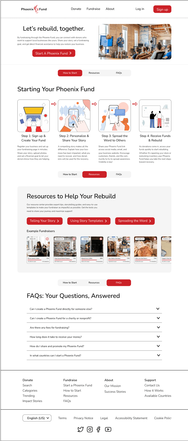 By placing a prominent "Start a Phoenix Fund" CTA on the landing page, any confusion about where a business owner should go to start fundraising is now removed. Minimizing decision fatigue ensures the users’ experience is intuitive, boosting engagement and satisfaction.